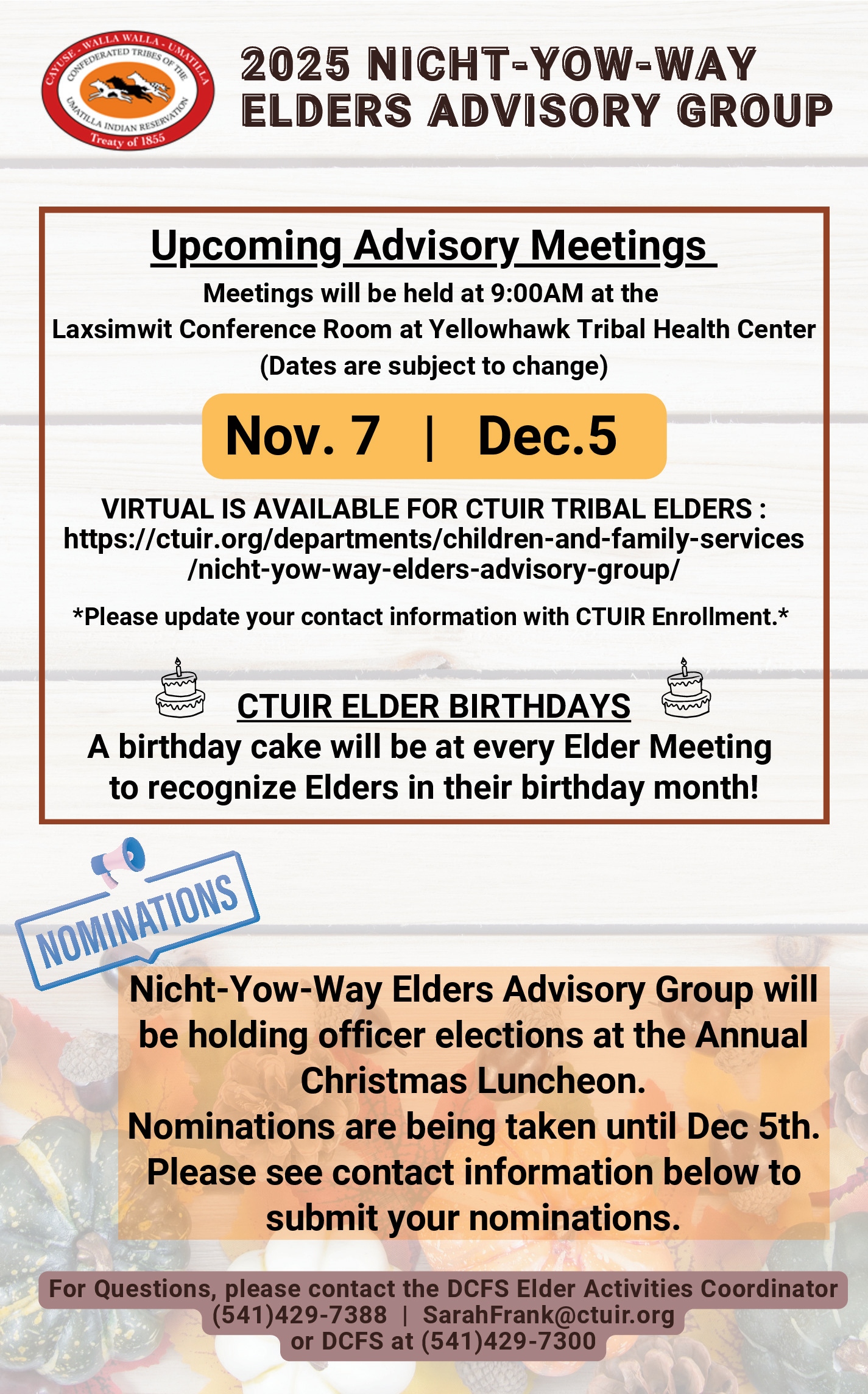 - Yellowhawk Tribal Health Center to ensure all Elders have access to quality healthcare, caregivers, personal care aides, and equipment.