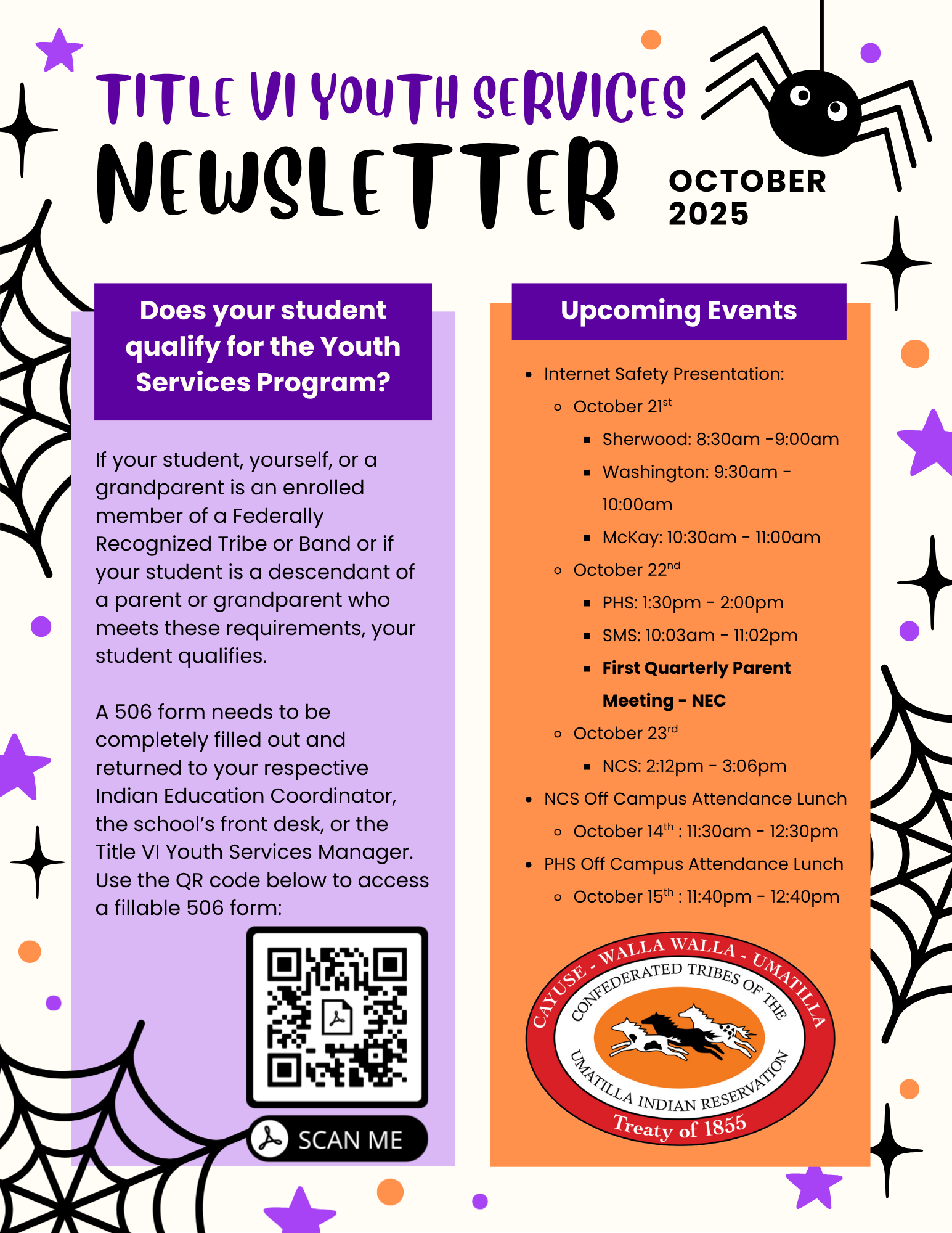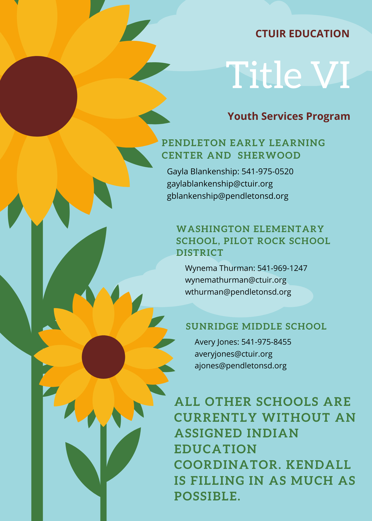 A 506 form needs to be completely filled out and returned to your respective Indian Education Coordinator, the school’s front desk, or the Title VI Youth Services Manager.