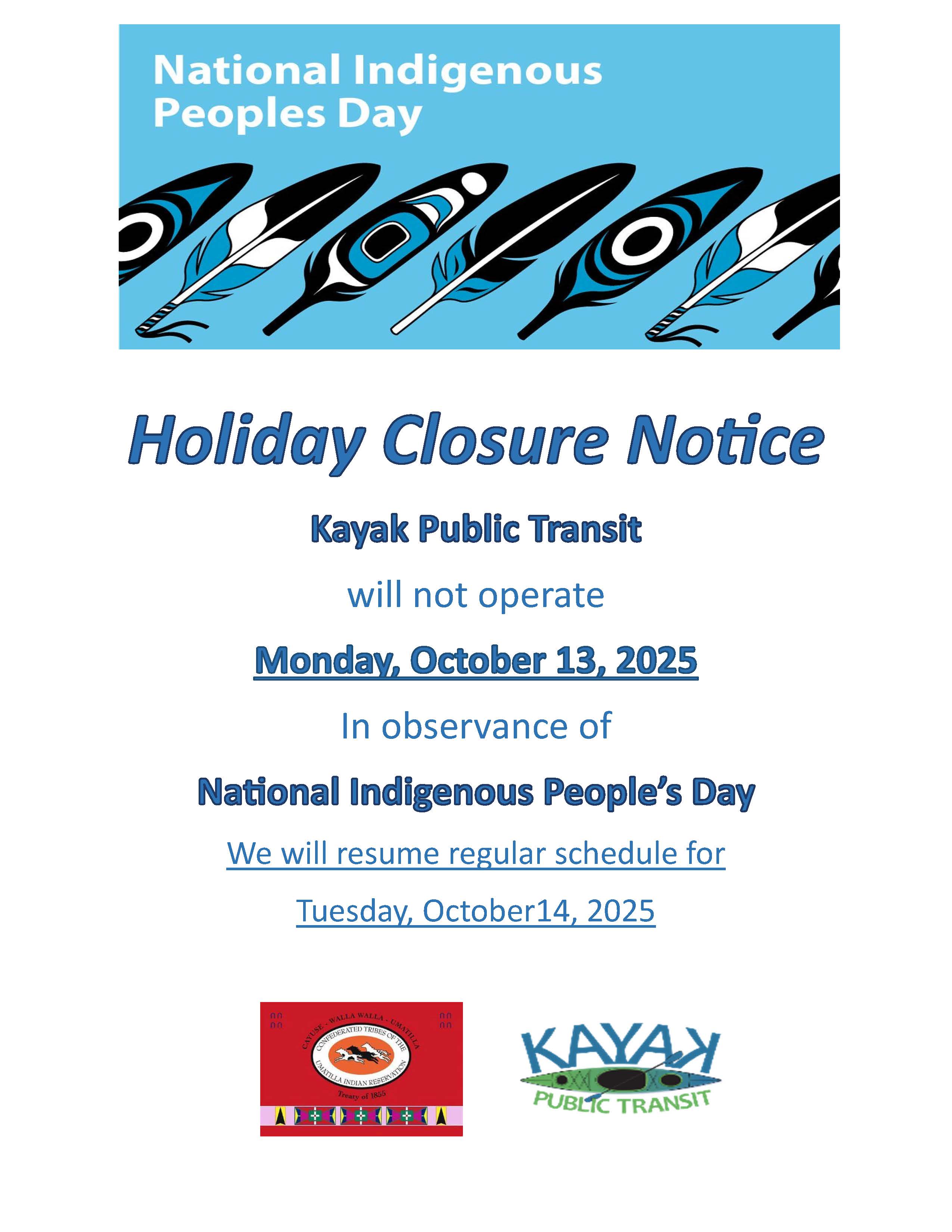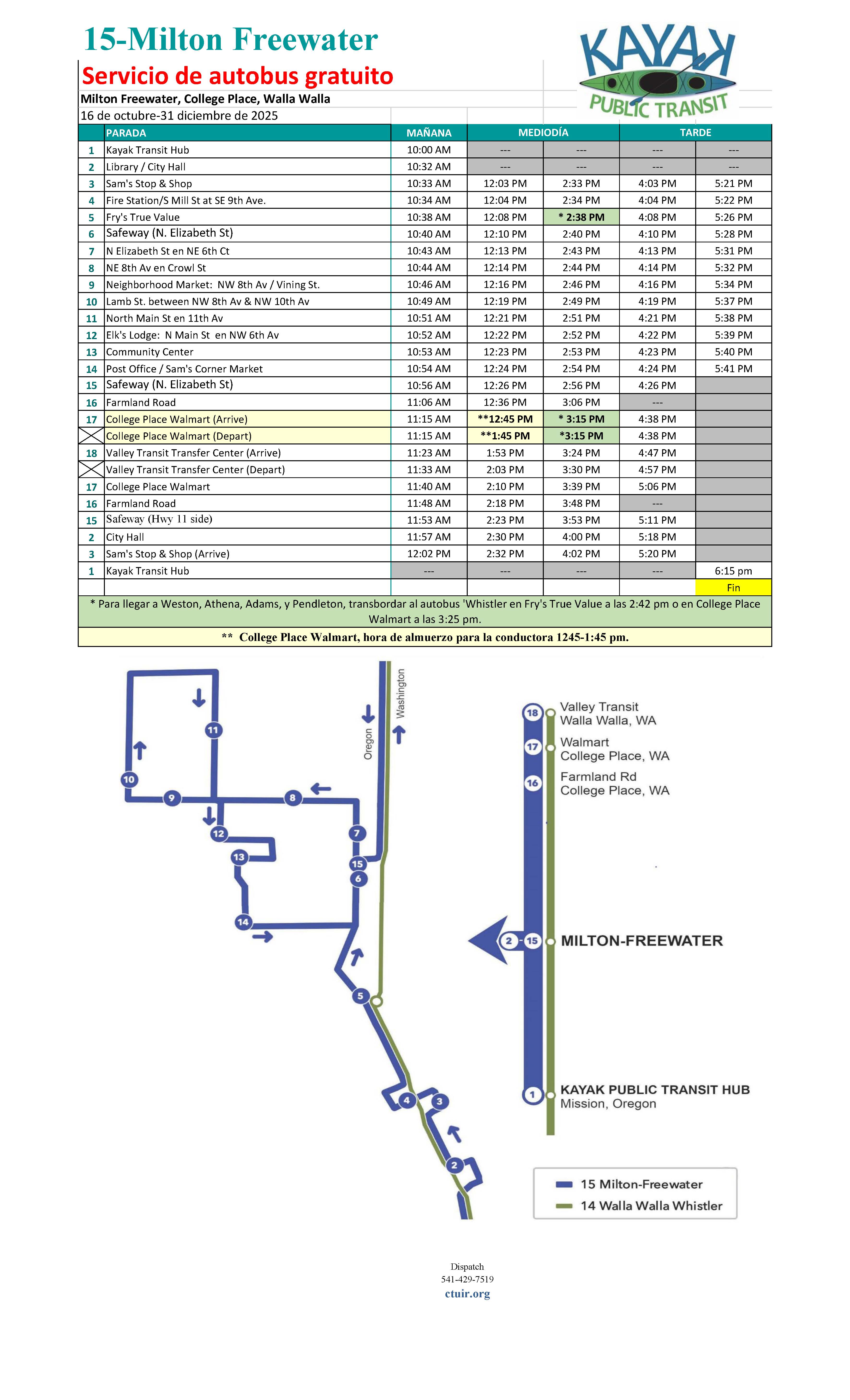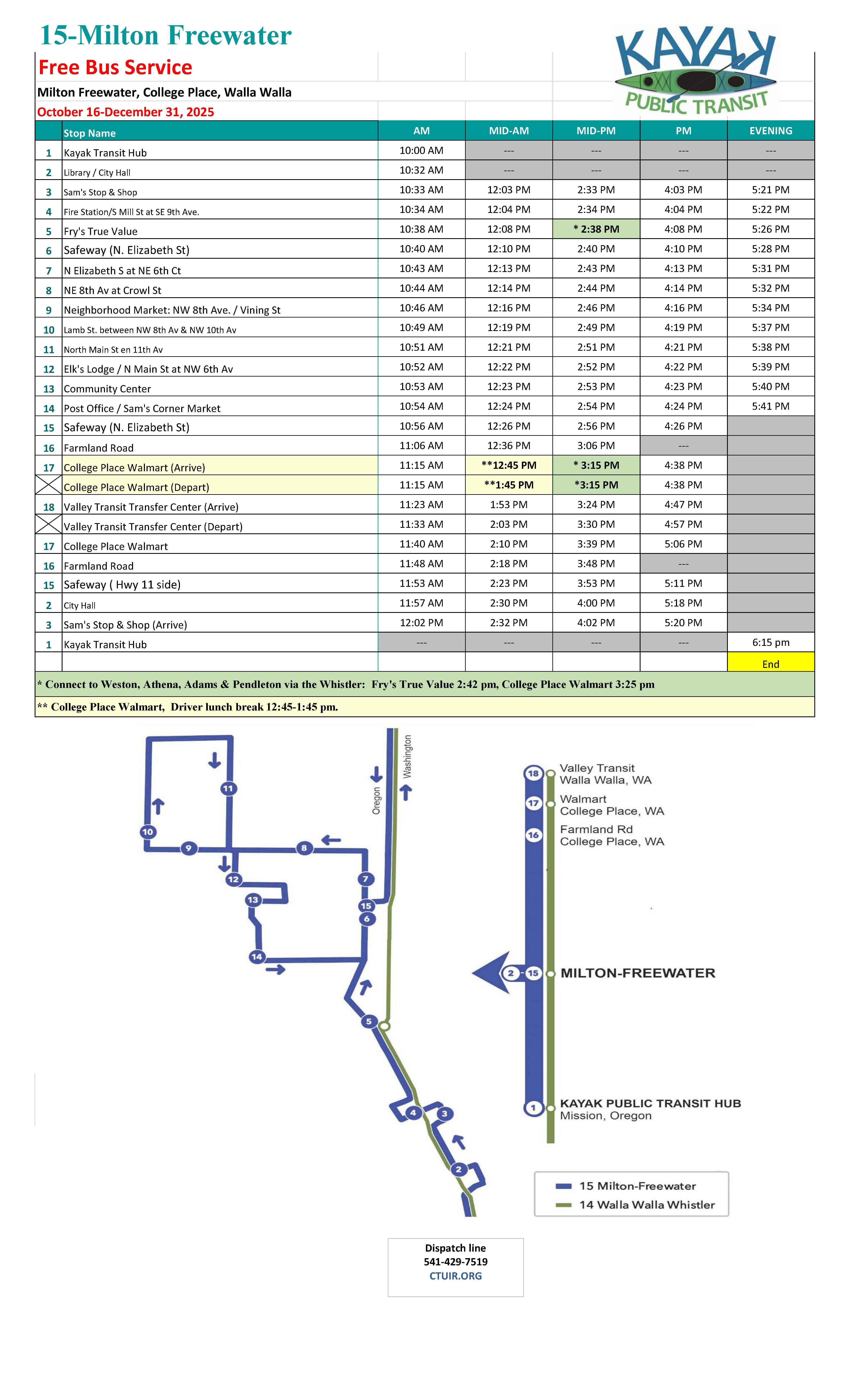 If you have any suggestions, comments, or questions about the schedule please call our dispatch line at (541)429-7519 Monday-Friday from 4:00 AM-9:00 PM.