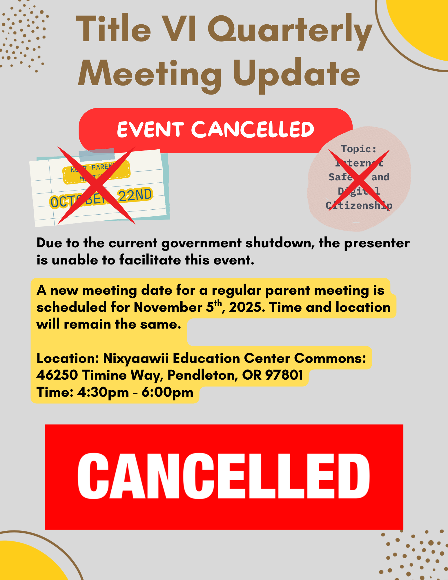 Due to the government shut down, the presenter is unable to facilitate the Internet Safety and Digital Citizenship Training.